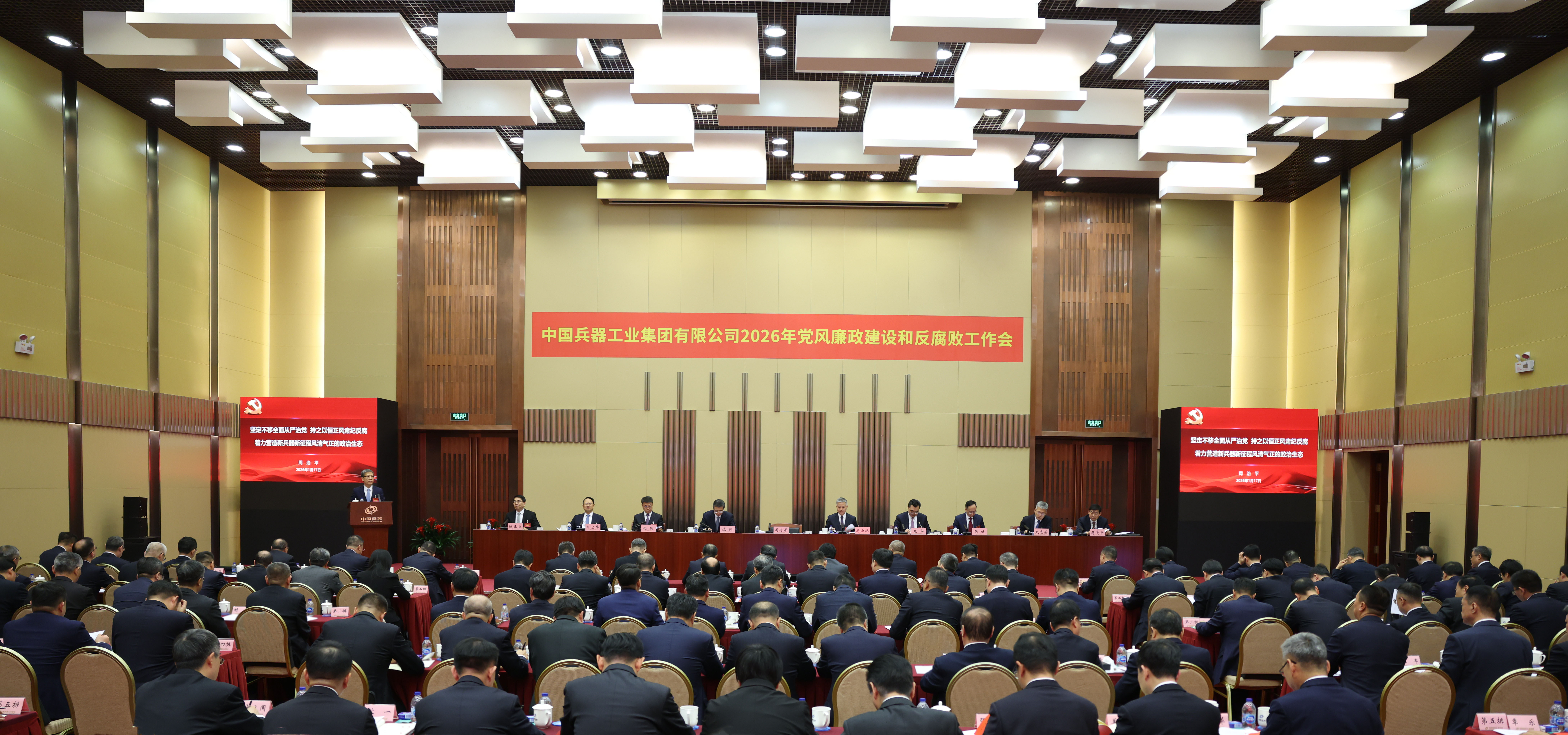 1月17日,中国兵器工业集团有限公司召开2026年党风廉政建设和反腐败工作会议,会议以习近平新时代中国特色社会主义思想为指导,深入学习贯彻党的二十大和二十届四中全会精神,全面贯彻落实二十届中央纪委五次全会精神,总结工作、部署任务,以更高标准、更实举措推进全面从严治党,为实现集团公司“十五五”时期目标任务提供坚强保障。集团公司党组书记、董事长周治平作了《坚定不移全面从严治党,持之以恒正风肃纪反腐,着力营造新兵器新征程风清气正的政治生态》的讲话,并与集团公司各部门、各子集团和直管单位签订《党风廉政责任书》。驻集团公司纪检监察组组长、集团公司党组成员陈正云传达了二十届中央纪委五次全会精神,通报了驻集团公司纪检监察组2025年重点工作和查处典型案件暴露出来的问题并提出意见要求。集团公司总经理、党组副书记马云双主持会议。